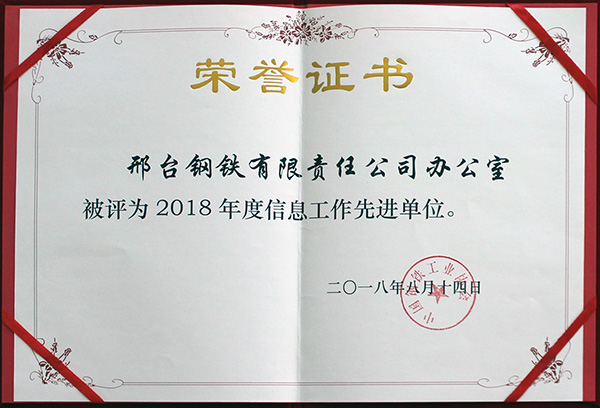 2018年10月22日,在上海舉辦的“2018年Mysteel中國工業(yè)線材暨緊固件產(chǎn)業(yè)鏈高峰論壇”上,論壇評委會根據(jù)對國內(nèi)工業(yè)線材生產(chǎn)鋼廠2017-2018年品牌、質(zhì)量和市場反饋等評比,評選出“中國工業(yè)線材行業(yè)鋼廠領導品牌”,邢鋼獲此殊榮。