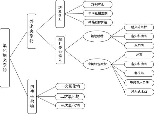 而外來夾雜主要是在鋼的熔煉、出鋼和澆鑄過程中,鋼液同耐火材料和爐渣相接觸,爐渣被卷入鋼液中(特別是出鋼的時(shí)候),耐火材料在高溫收到?jīng)_蝕,它的顆?;烊脘撘褐?,這些情況都難以避免?;烊脘撘褐械哪突鸩牧虾蜖t渣顆粒通過與鋼液起化學(xué)反應(yīng)不斷在成分和結(jié)構(gòu)上發(fā)生變化。這些顆粒,不論是剛剛被機(jī)械地帶入鋼液中的,還是經(jīng)歷了相當(dāng)變化的,一旦被滯留到鑄件中,就變成了鋼中的夾雜物,這些就叫外來夾雜物。外來一般來說尺寸較大,外形不規(guī)則,結(jié)構(gòu)復(fù)雜,只是偶然在這里或者那里出現(xiàn)。夾雜物的來源和分類下圖。