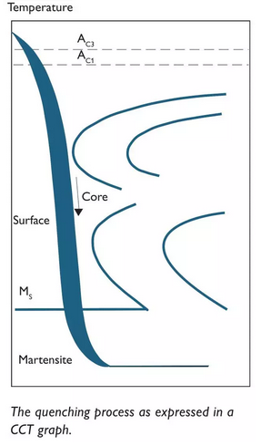 在一個部件中可以獲得的最大冷卻速率取決于鋼的熱導(dǎo)率,淬火介質(zhì)的冷卻能力和部件的橫截面積。