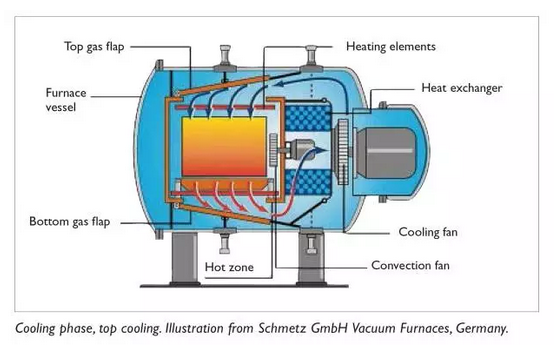 •冷卻將通過大量注入惰性氣體(最常見的是氮氣)進入加熱室,變換方向,達到以前在爐子編程時選擇的過壓。最大超壓是每個爐的標(biāo)稱特性。