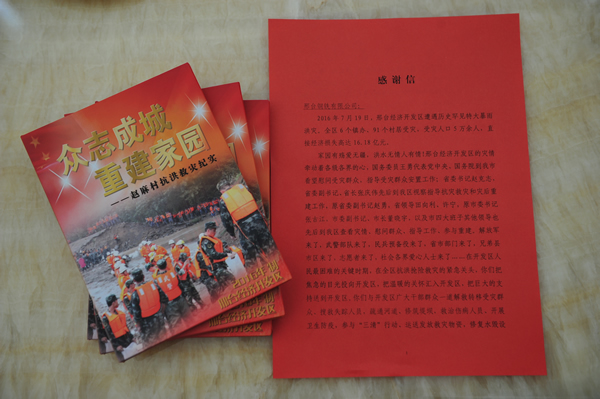 2016年7月19日,邢臺市突然連降特大暴雨,遭遇了重大洪災(zāi)。災(zāi)害發(fā)生后,邢鋼公司在第一時間作出了響應(yīng),公司立即組織抗洪搶險突擊隊,經(jīng)過多日奮戰(zhàn),幫助邢臺開發(fā)區(qū)群眾搶險受災(zāi)物質(zhì)、清除淤泥、恢復(fù)家園,努力將洪災(zāi)的危害降到最低。受到市開發(fā)區(qū)群眾的一致好評。同時,也受到了當(dāng)?shù)卣o予高度評價。