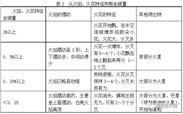 對于火花的研究,1804年起英國的門生?塔斯克斯(Manson Tacpues)、1929年給特(T.D.Gat)及日本“火花檢查法研究委員會”都曾從鋼品種檢查的角度系統(tǒng)研究了如何根據(jù)砂輪上磨出來的火花特征去鑒定鋼的品種。對于在煉鋼過程中如何用視覺掌握火花的方法的研究是極其貧乏的。看火花時感知的對象是運動物體,即火花。要看它分叉的數(shù)量,分叉是一種形狀變化?;鸹ǚ植嬷噪y以看到的原因是由其本身及四周的一些因素決定的,如爐口噴出來的碳花體積很小,很密,流動速度很快,同時白色碳花又在白亮火焰的背景上,因此很難識別碳花,而碳花分叉更難辨別,因為碳花從爐口噴出后只在半空中開始分叉,而且分叉的時間極短促,所以要想觀察到碳花的分叉,就需要用視覺追蹤,把碳花作為一個運動物體的運動軌跡。此外要掌握碳花運動速度,因為碳花在分叉以前要降低速度,在半空停留一下隨后分叉,所以還要掌握碳花在空中分叉的位置。碳花在半空停留時就注意觀察才能看到碳花分叉的數(shù)目。掌握碳花運動的規(guī)律,由時間空間定位來觀察碳花分叉情況,在實踐中證明了是個好方法。在剛開始學習看碳花時,由于碳花很密,可以先從碳花最稀的地方選擇地找一個來觀察,這樣容易觀察到它的特征,這就是選擇性的部分觀察,學會部分觀察后才可進行全部觀察。有的煉鋼工沒有掌握這一認識活動的規(guī)律,就始終不能看到碳花的分叉,目前在煉鋼工中不能判斷碳花的不乏其人。
