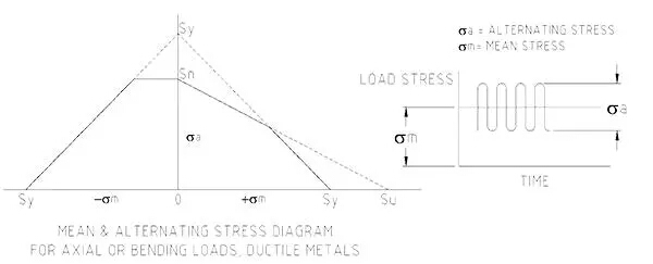 知道一部分將受到波動(dòng)負(fù)載需要設(shè)計(jì)師設(shè)計(jì)的部分,為該條件。使用已知的極限拉伸應(yīng)力和屈服應(yīng)力(金屬首先開始永久變形的應(yīng)力,約8090%的拉伸應(yīng)力),設(shè)計(jì)者構(gòu)造一個(gè)應(yīng)力限制包絡(luò),如圖2所示。然后設(shè)計(jì)該部件以使施加到其上的循環(huán)載荷為控制在包絡(luò)內(nèi)的應(yīng)力。