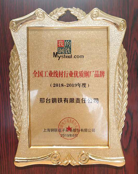 The judging panel selected the "high-quality brand of national industrial wire industry" and "popular brand of national industrial wire industry", which was based on the brand, quality and market feedback of domestic steel mills from 2018 to 2019. Xingtai Steel won these two titles.