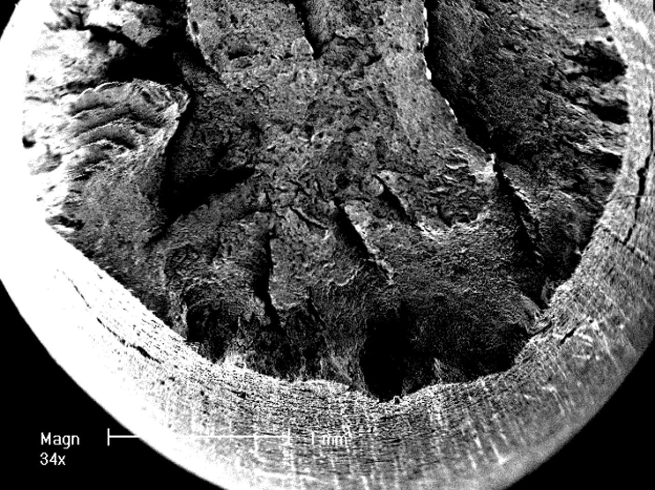 含碳量高的棒材發(fā)生過很多次斷裂,如45#鋼做的軸,使用不太長的時間就發(fā)生斷裂。從斷裂后部件上取樣,進(jìn)行金相分析,往往找不到產(chǎn)生的原因,即算牽強(qiáng)附會找到了一些原因,也不是實(shí)際的原因。