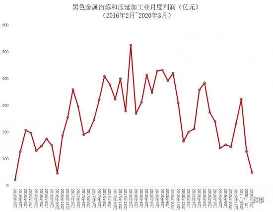 據(jù)此計算,去年3月份黑色金屬冶煉和壓延加工業(yè)利潤為207.5億元, 今年3月為50.1億元,比去年同期減少76%,已基本接近2016年初供給側(cè)結(jié)構(gòu)性改革開始時的水平(如下圖)。