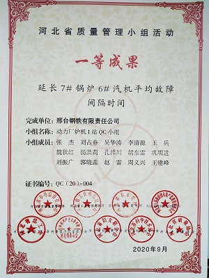 今年5月份邢鋼上報(bào)篩選出的10個(gè)質(zhì)量科技成果,參加了9月份河北省市場(chǎng)監(jiān)管局、省工信廳、省農(nóng)業(yè)農(nóng)村廳、省國資委、省總工會(huì)、省團(tuán)省委、省婦聯(lián)、省科協(xié)和省質(zhì)協(xié)等9個(gè)單位聯(lián)合組織的成果交流會(huì)發(fā)布比賽,由專家評(píng)委當(dāng)場(chǎng)打分確定比賽成績,最終認(rèn)定了各參賽選手獲獎(jiǎng)等級(jí),日前通過冀質(zhì)協(xié)字〔2020〕20 號(hào)《關(guān)于印發(fā)2020年河北省質(zhì)量管理小組活動(dòng)質(zhì)量科技成果及優(yōu)秀企業(yè)、卓越領(lǐng)導(dǎo)者、優(yōu)秀推進(jìn)者名單的通知》文件中公布了質(zhì)量成果獲獎(jiǎng)名單,并頒發(fā)了證書。