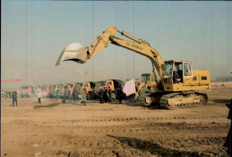 圖為1995年破土動(dòng)工建設(shè)的場(chǎng)景,鞭炮的硝煙尚未消散,挖掘機(jī)抬起挖斗正要挖下第一鏟,運(yùn)輸車(chē)整裝待發(fā),“煉鋼”來(lái)了!