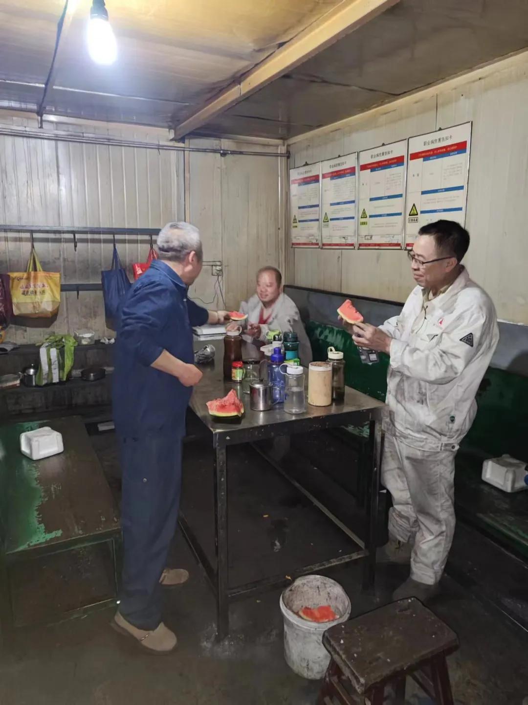 “天氣炎熱,大家辛苦了”,在爐前,侯副總親自把西瓜送到員工手里,并送上節(jié)日的祝福“端午安康!”希望大家在工作中注意做好防暑降溫,避免中暑,工作中合理分配體力,既要保證西場主溝澆筑過程安全,又要保證東場單場出鐵過程安全。在二燒混合機檢修現(xiàn)場,侯總了解檢修進度,叮囑維修、燒結車間主任,要注意檢修過程人員安全,保證檢修質量,為二燒設備穩(wěn)定運行奠定基礎。