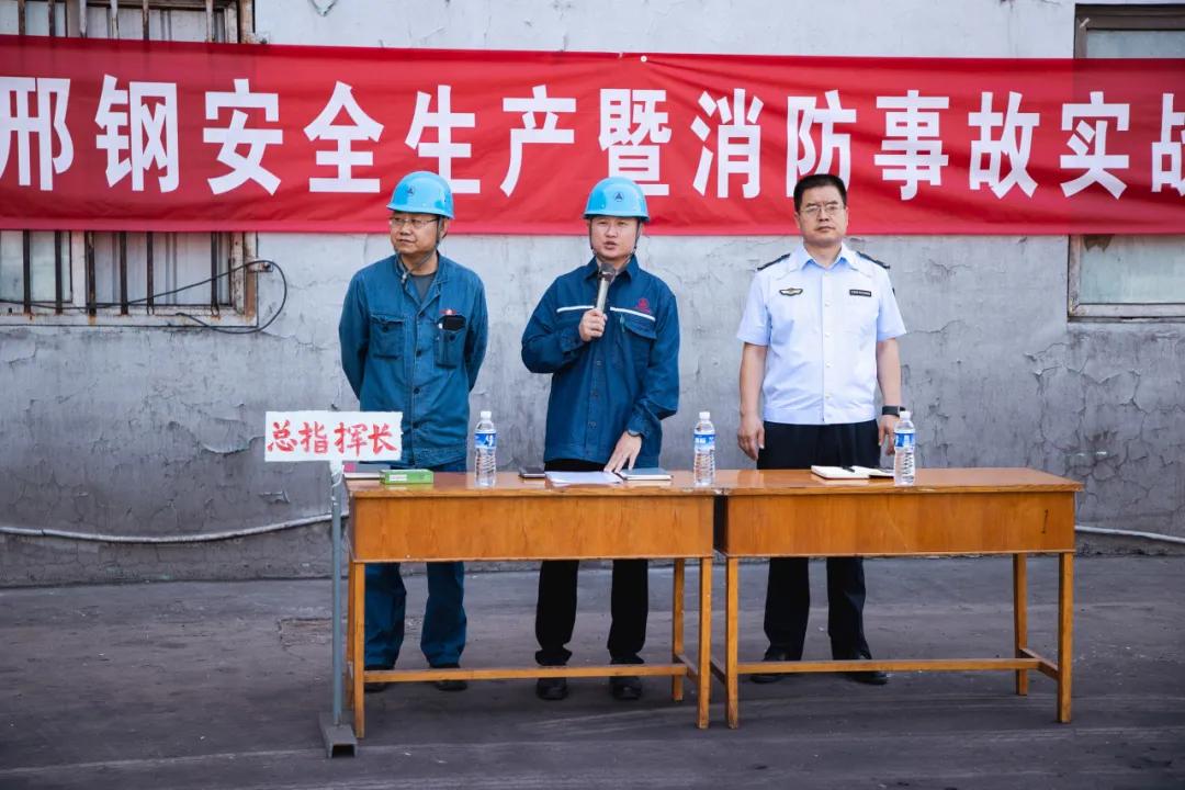 上午8點(diǎn)55分,邢鋼副總經(jīng)理李紅超宣布應(yīng)急演練正式開(kāi)始。9時(shí),中控室氣體檢測(cè)報(bào)警設(shè)施顯示5#探頭報(bào)警,粗苯工檢查發(fā)現(xiàn)粗苯罐放空閥外側(cè)法門(mén)里側(cè)法蘭開(kāi)裂,發(fā)生粗苯泄漏,隨即報(bào)告值班廠長(zhǎng),焦化廠粗苯儲(chǔ)罐事故專項(xiàng)應(yīng)急預(yù)案響應(yīng)啟動(dòng)。警報(bào)一響,應(yīng)急指揮部迅速成立,現(xiàn)場(chǎng)所有人員在指揮長(zhǎng)的指導(dǎo)下,按照應(yīng)急預(yù)案有序開(kāi)展了處置、救援等應(yīng)急程序。線材廠、煉鋼廠、煉鐵廠、質(zhì)控部等單位組織人員到現(xiàn)場(chǎng)觀摩學(xué)習(xí)。
