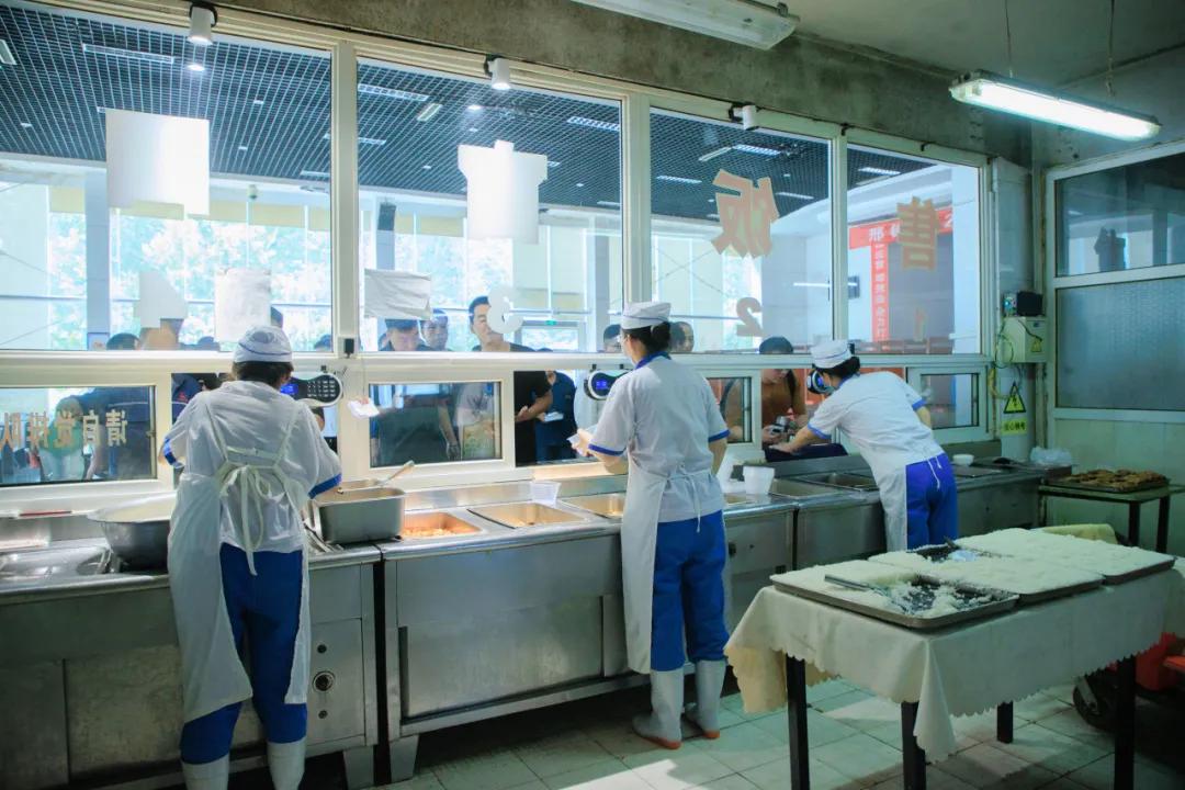 經(jīng)濟(jì)實(shí)惠。食堂以低于成本的價(jià)格向職工提供三餐,午餐中三肉兩素5元能吃飽吃好,鹵雞腿4元1個(gè),獅子頭2元1個(gè),黃燜雞塊、紅燒帶魚(yú)等5元1份,面條/饸饹面2.5元1份;早餐、晚餐2元能吃飽吃好,雞蛋0.5元1個(gè),手抓餅1元1個(gè),雞蛋灌餅含1雞蛋1.5元1個(gè),肉夾饃3元1個(gè)。