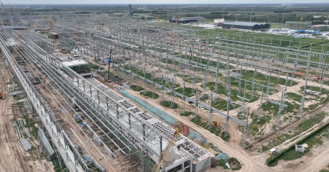 工程車來(lái)回穿梭的車轍印、大型機(jī)械的轟鳴聲、矗立的鋼結(jié)構(gòu)和封頂?shù)慕ㄖ黧w、塔吊揮舞著長(zhǎng)臂加緊為建設(shè)者運(yùn)送物資……日前,位于威縣高新區(qū)的邢臺(tái)鋼鐵有限責(zé)任公司搬遷升級(jí)項(xiàng)目(以下簡(jiǎn)稱“邢鋼搬遷升級(jí)項(xiàng)目”)正在有序緊張施工中,2000余名工人分布在各個(gè)作業(yè)面,項(xiàng)目已全面進(jìn)入地上鋼結(jié)構(gòu)及主線設(shè)備基礎(chǔ)施工階段,項(xiàng)目一期預(yù)計(jì)今年年底建成投產(chǎn)。