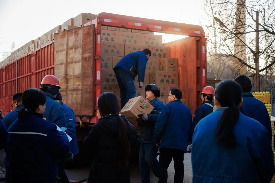 在公司各福利品發(fā)放點(diǎn),各單位員工紛紛匯聚于此,大家齊心協(xié)力,將一箱箱、一盒盒滿載祝福的禮品卸下,整齊堆碼,有序分發(fā),現(xiàn)場(chǎng)洋溢著一片熱鬧而溫馨的氛圍。