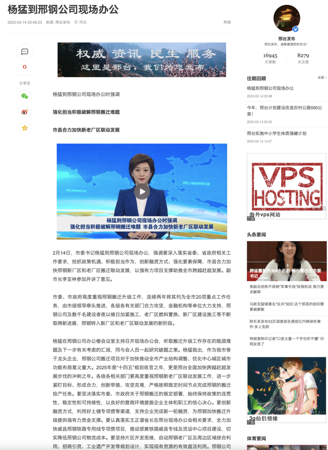 2月14日,市委書(shū)記楊猛到邢鋼公司現(xiàn)場(chǎng)辦公,強(qiáng)調(diào)要深入落實(shí)省委、省政府相關(guān)工作要求,搶抓政策機(jī)遇、積極擔(dān)當(dāng)作為,創(chuàng)新融資方式、強(qiáng)化要素保障,市縣合力加快邢鋼新廠區(qū)和老廠區(qū)搬遷聯(lián)動(dòng)發(fā)展,以強(qiáng)有力項(xiàng)目支撐助推全市跨越趕超發(fā)展。副市長(zhǎng)李亞林參加并講了意見(jiàn)。