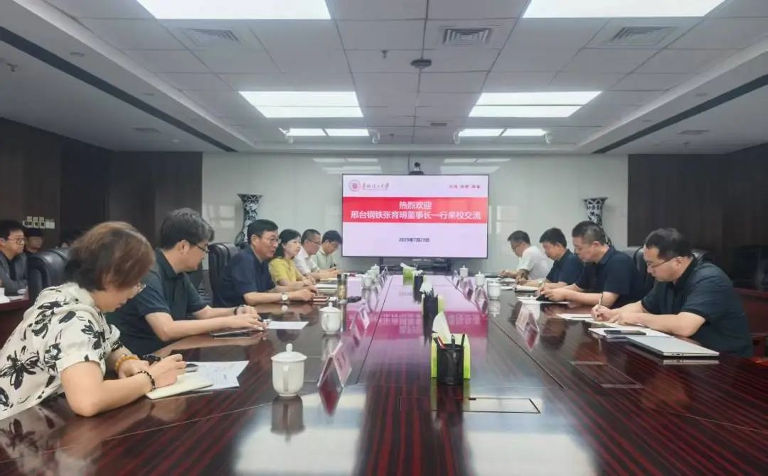 董事長(zhǎng)張育明向校方簡(jiǎn)要介紹了邢鋼的發(fā)展歷程及轉(zhuǎn)型升級(jí)搬遷改造項(xiàng)目,邢鋼作為深耕特鋼線材和深加工領(lǐng)域的高新技術(shù)企業(yè),始終致力于產(chǎn)品創(chuàng)新與技術(shù)升級(jí)。當(dāng)前,邢鋼正全力推進(jìn)轉(zhuǎn)型升級(jí)搬遷項(xiàng)目,對(duì)前沿技術(shù)成果轉(zhuǎn)化和高水平人才需求十分迫切,希望深化雙方合作,共同搭建產(chǎn)學(xué)研協(xié)同創(chuàng)新平臺(tái),為邢鋼轉(zhuǎn)型升級(jí)與高質(zhì)量發(fā)展提供強(qiáng)有力的技術(shù)支撐。