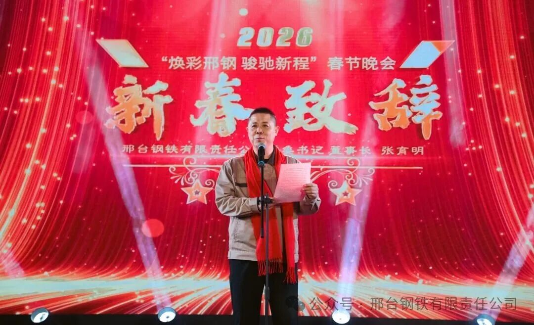 新征程,新目標,新跨越。2月6日,公司在會議中心舉辦“煥彩邢鋼,駿馳新程”2026年新春聯(lián)歡會。公司黨委書記、董事長張育明攜公司全體中高層領導與2025年受表彰的先進個人、員工代表歡聚一堂,共話邢鋼大業(yè),喜迎丙午年新春。